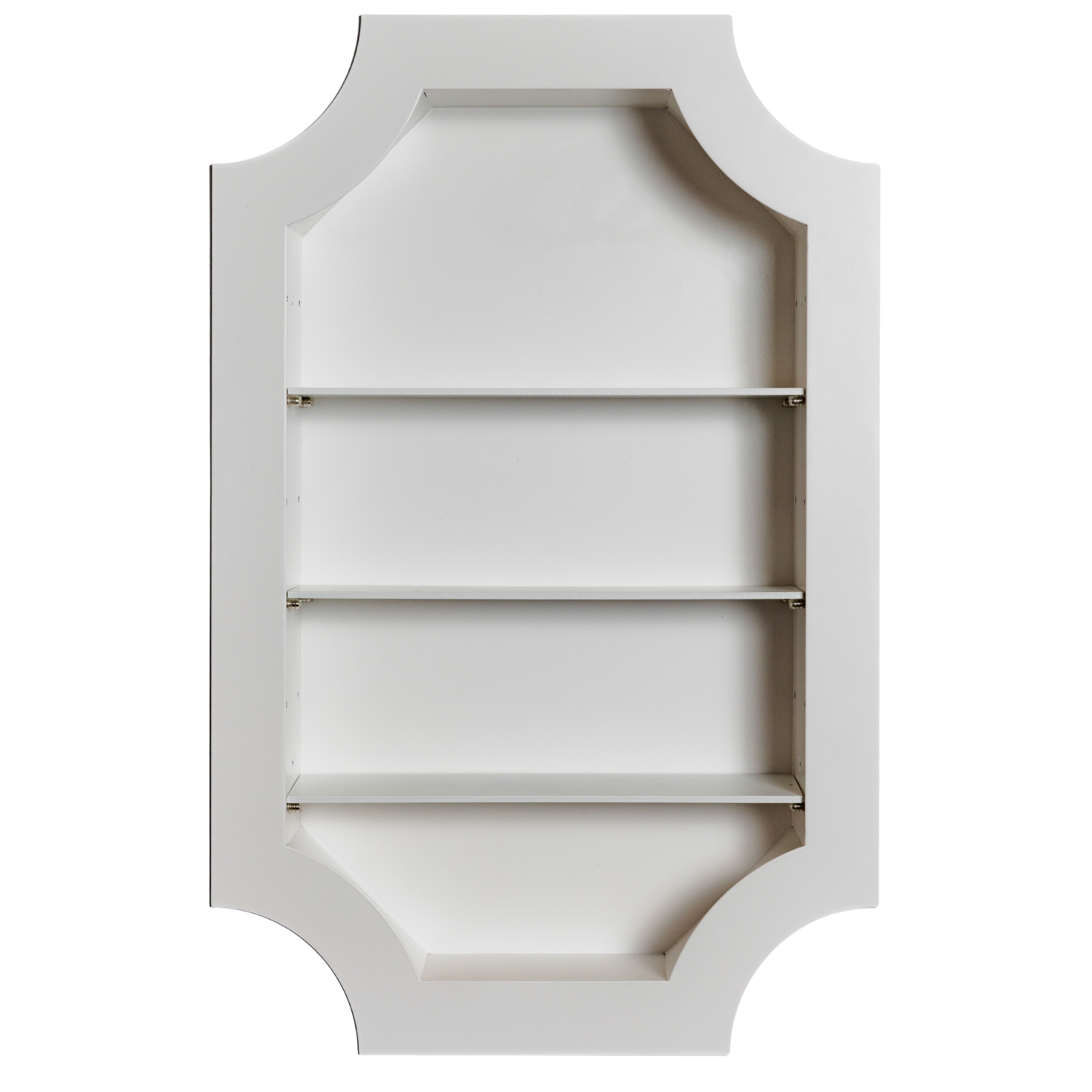 - Three powder coated shelves included, with custom options available (including clear glass or antiqued mirror)