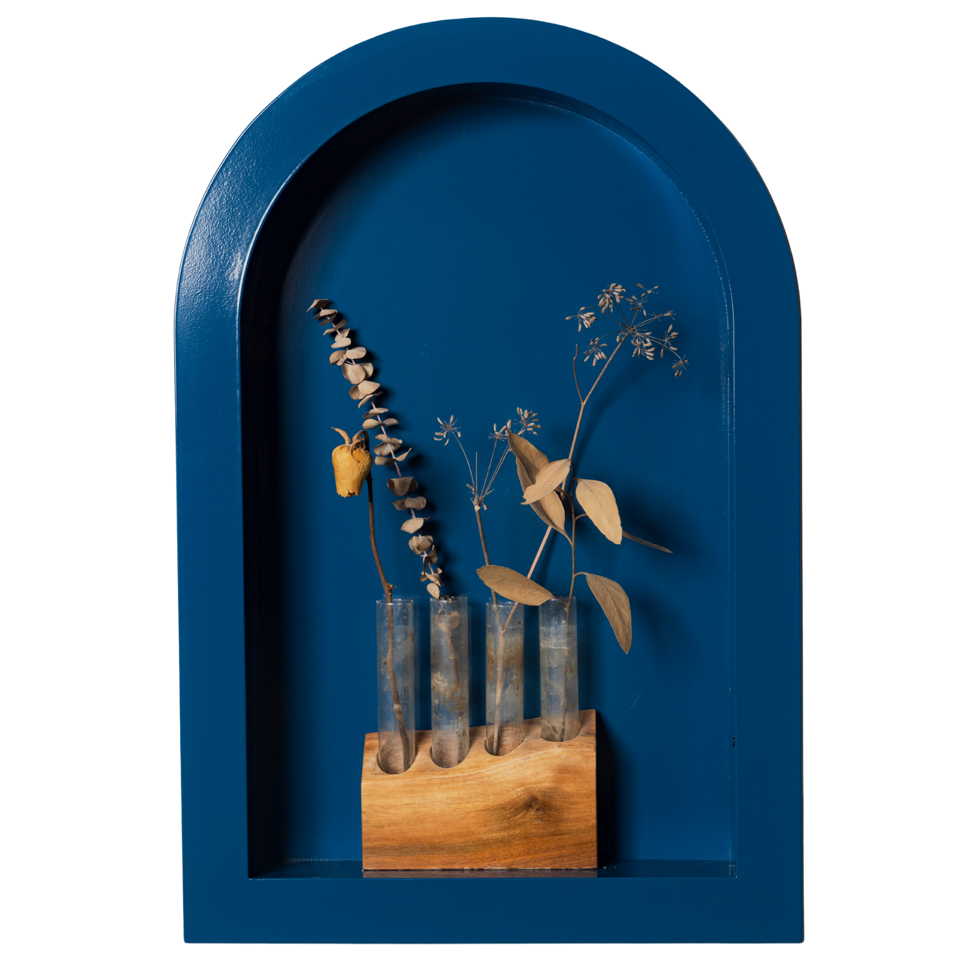 Designed for versatility, The Grotto works as a mini bar, plant display, or decorative showcase. It offers unlimited powder-coated finishes and customizable backdrops like wallpaper, antiqued mirror glass, or bespoke materials. Three adjustable shelves are included, easily repositioned with stainless steel pins. Its clean geometry and proportions reflect Scandinavian minimalism, while durable construction ensures long-term adaptability.